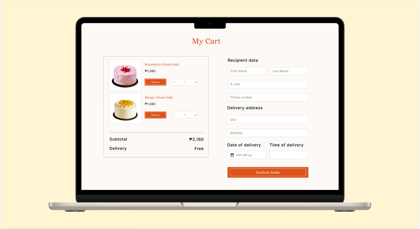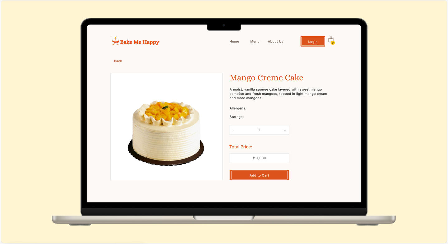 Brand design, web design, and front-end development for Bake Me Happy, a vibrant cake shop website. This project leverages PHP for backend development, alongside Bootstrap and JavaScript for the front end.
